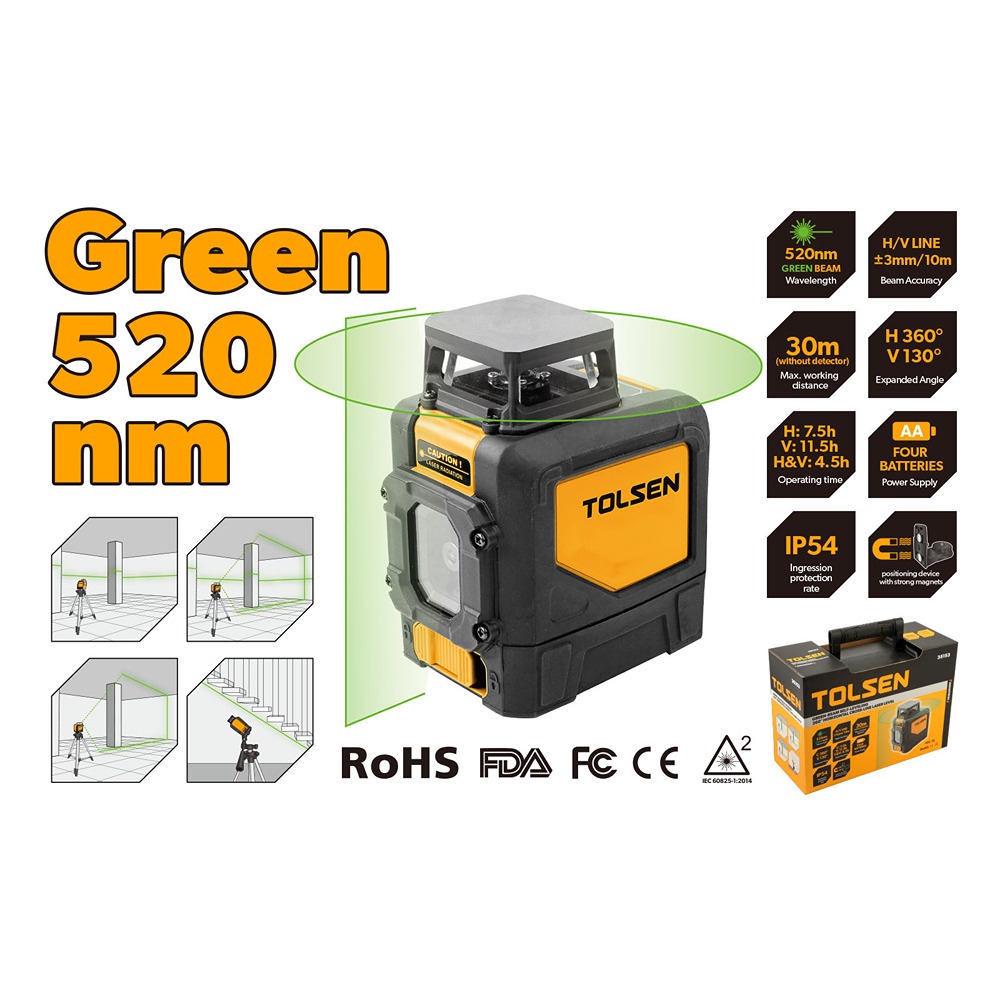 Tolsen Green laser, 360 degrees horizontal and 180 degrees vertical.