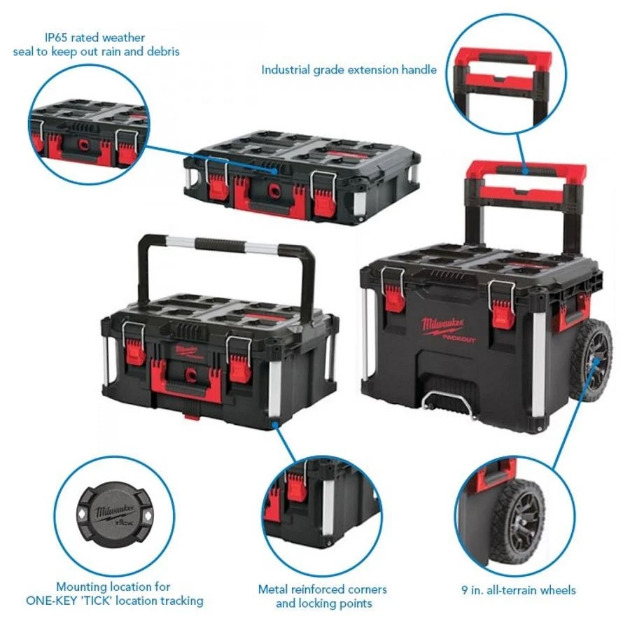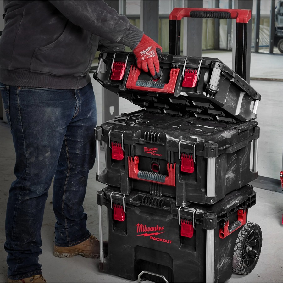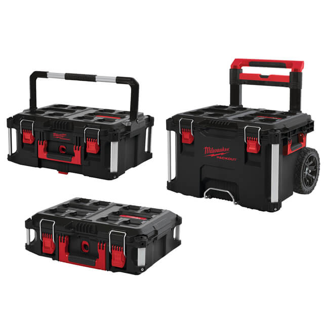 The Milwaukee Packout Toolbox System is ideal to use in harsh jobsite conditions with its tough impact resistant polymer design. Each tool box keeps jobsite debris and rain out due to the IP65 rated weather seal. All the tool boxes are compatible with all Milwaukee Packout modular storage items. Set Contains: 1x 4932464078-PACKOUT Trolley Box, 1x 4932464079-PACKOUT Large Box, 1x 4932464080-PACKOUT Box.